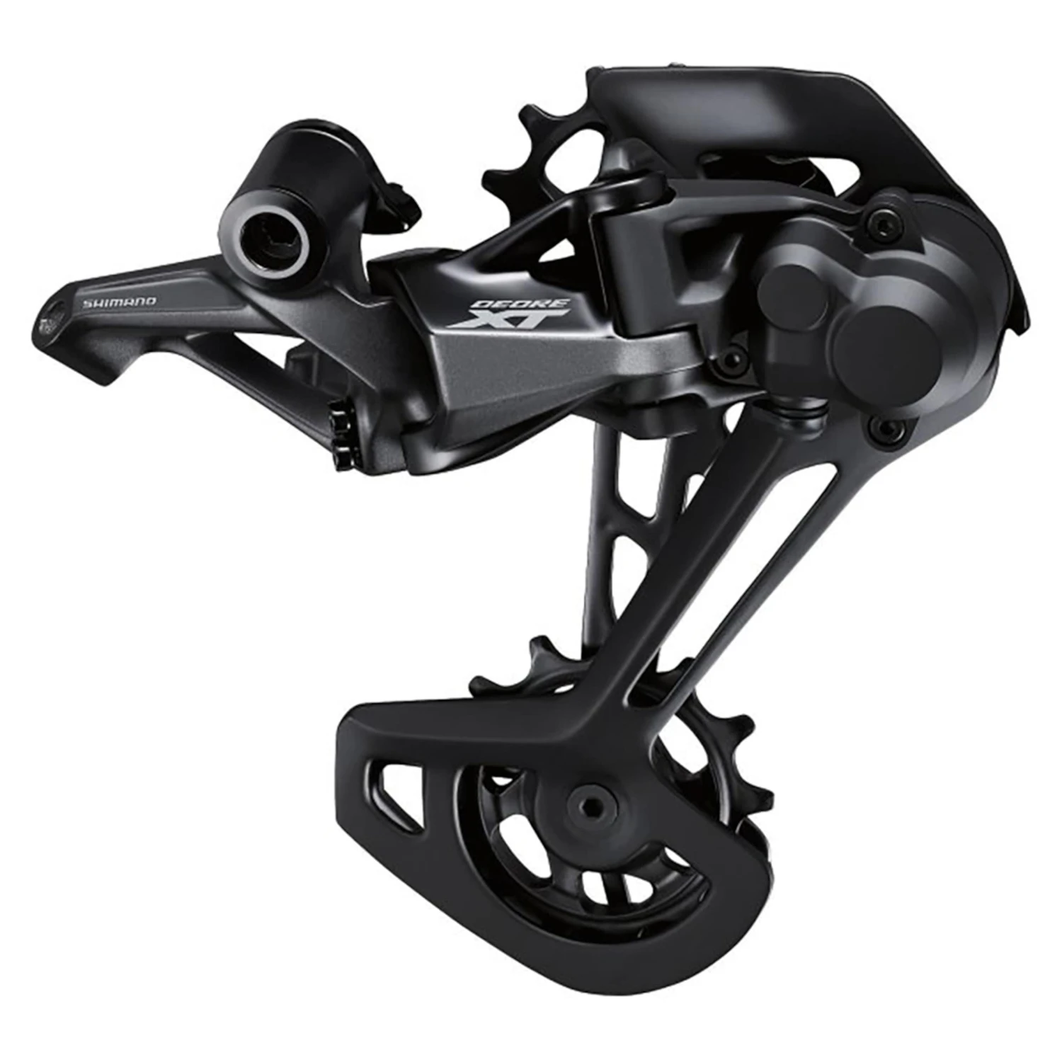 Pour mieux guider la chaîne quand elle va avec une plus grande dérive, le cœur du nouveau groupe de transmission XT possède de plus grands galets de guidage et de tension à 13 dents. Ils contribuent aussi bien à une meilleure stabilité de la chaîne comme le design Shadow RD+ avec amortisseurs de frictions propre à SHIMANO.